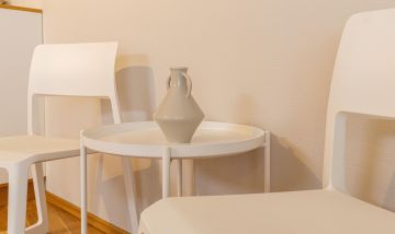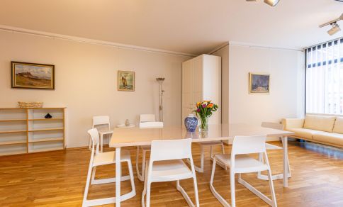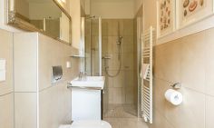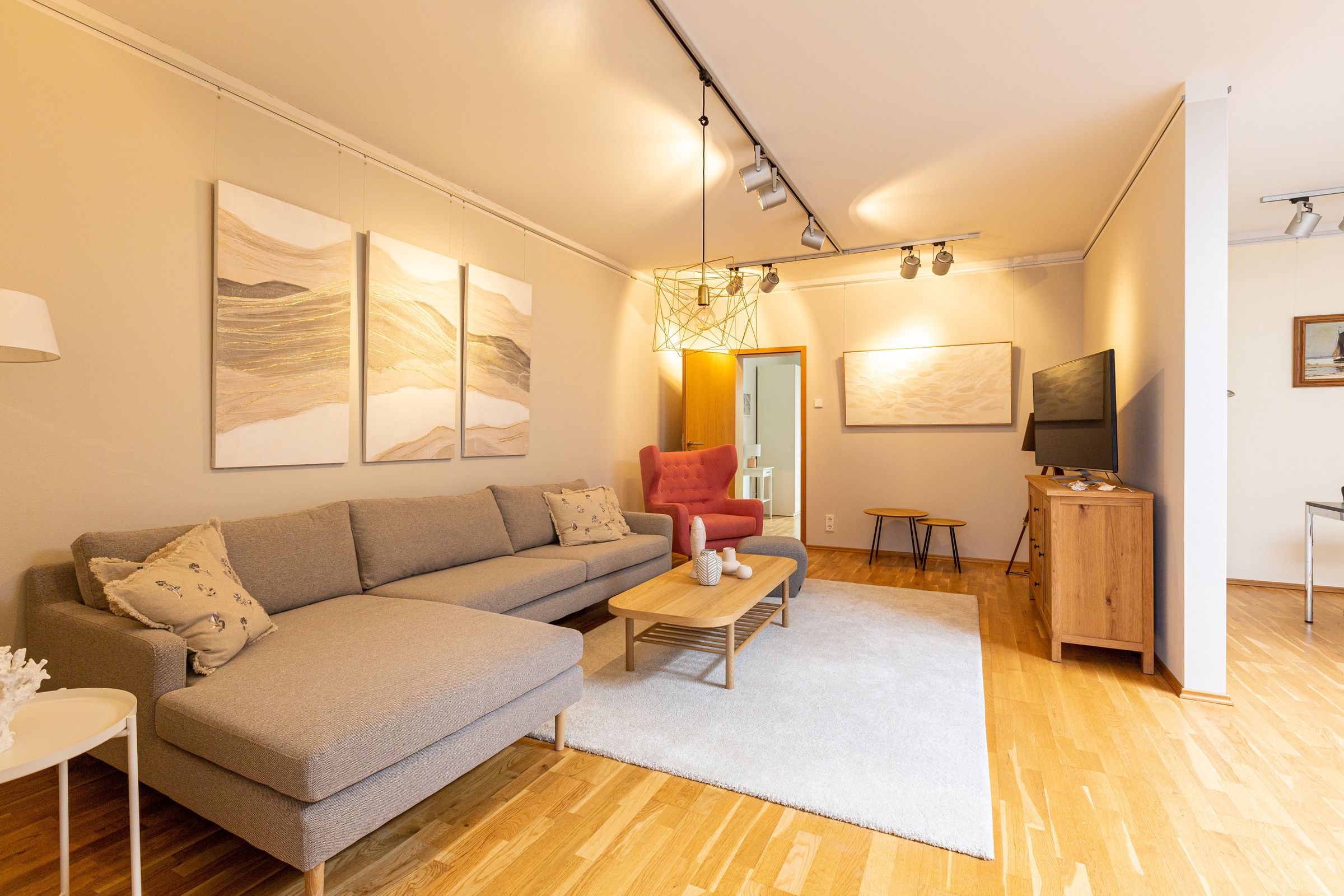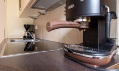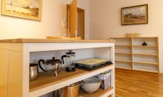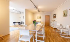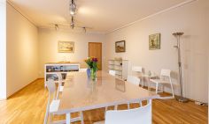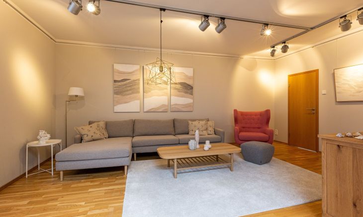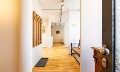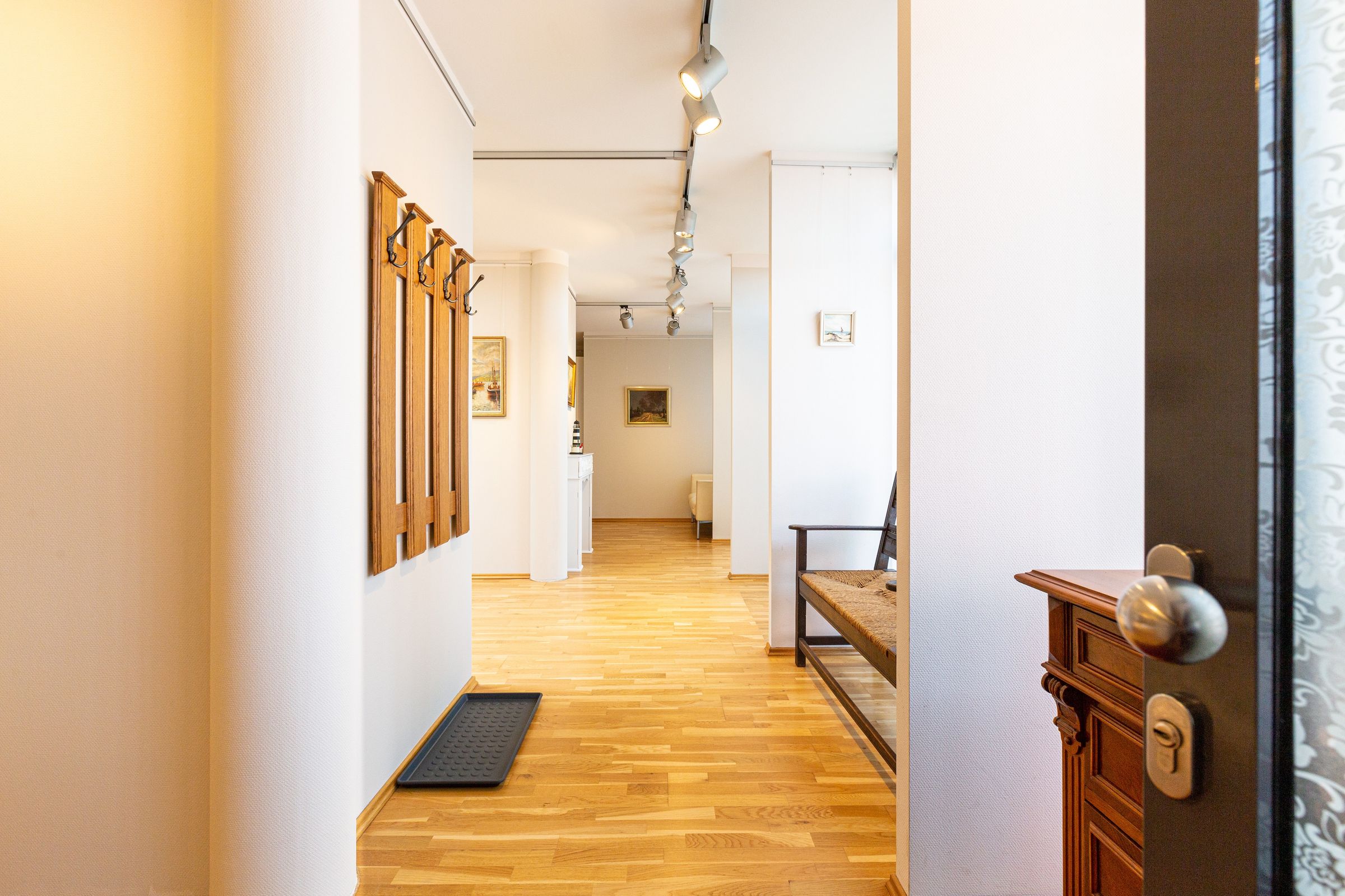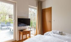 Die Galeriewohnung wurde in 2022 aufwendig renoviert. Entstanden ist eine 120 Quadratmeter große Ferienwohnung, die dank der besonderen Raumaufteilung und stillvollen Einrichtung einen wundervollen Urlaub garantiert. Schon mit Eintritt in die Wohnung begeistert die Freizügigkeit, die den Wohn- und Essbereich umgibt. Im hellen freundlichen Skandi-Stil eingerichtet, erinnern nur noch die Ölgemälde an den Wänden an die einstige Kunstgalerie des Hauses. Während der vordere Teil mit Sofalandschaft und TV für die erholsamen Urlaubsstunden steht, befindet sich im hinteren Teil der moderne Esstisch mit Küchentresen und Zugang zur gut ausgestatteten Küchenzeile. (Hinweis: Die auf den Bildern abgebildete Siebträgermaschine gehört nicht zur Ausstattung! Es ist eine handelsübliche Kaffeemaschine vorhanden.) Die beiden Schlafzimmer sind mit hochwertigen Boxspringbetten, TV und Kleiderschrank ausgestattet. Getrennt werden sie durch das Tageslichtbad, mit Dusche, WC und Handtuchhalter, dass von beiden Räumen zu begehen ist.