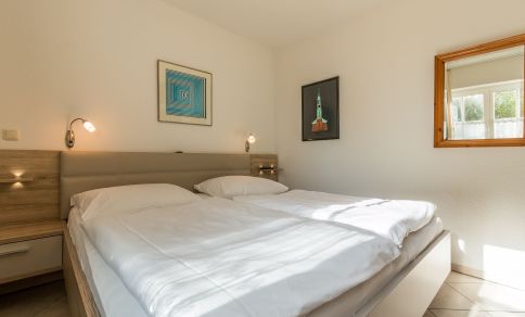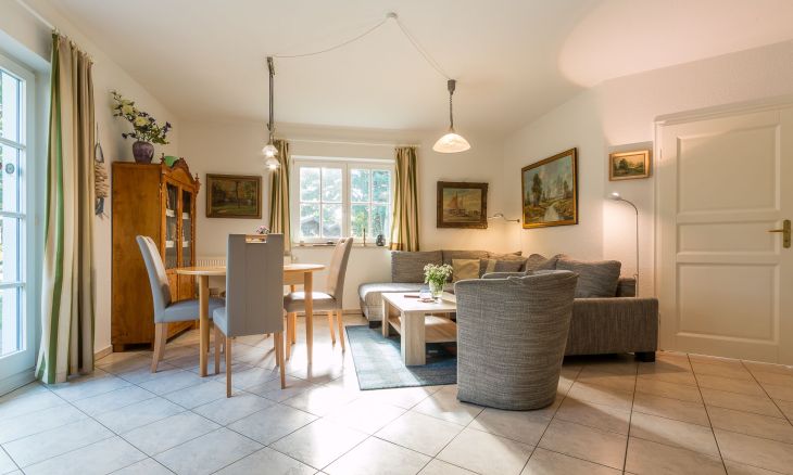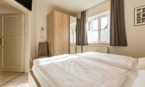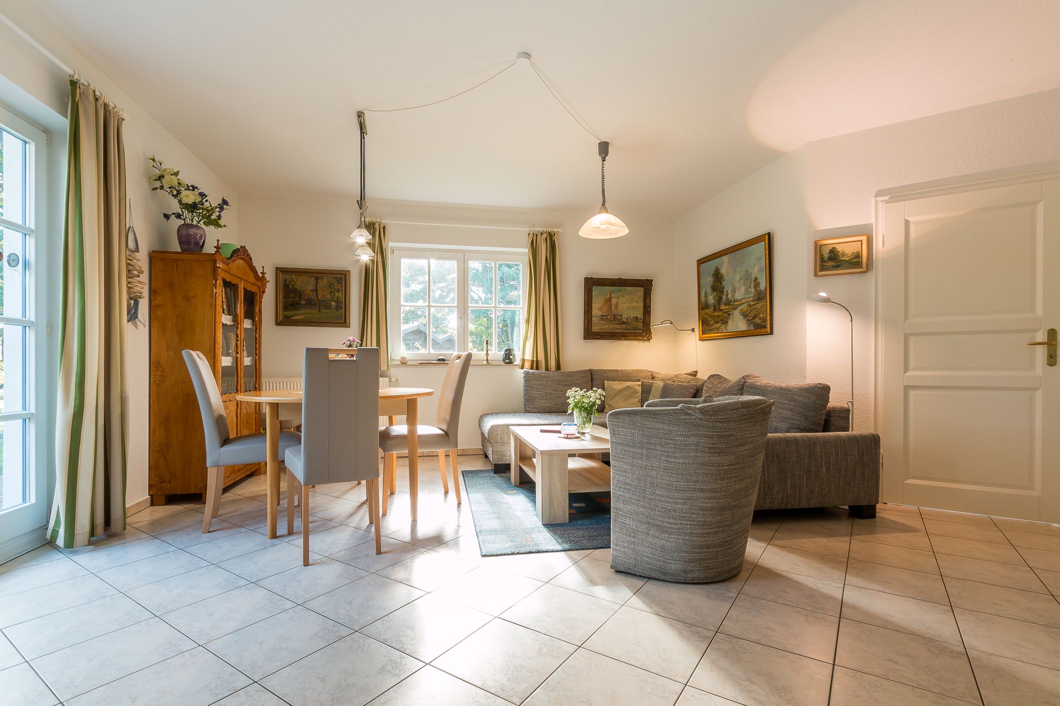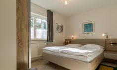 Die Wohnung Süderwiese ist klein, aber ein angenehmer Aufenthaltsort in den Ferien. Die zentrale Lage am vorderen Grenzweg ermöglicht rasche Einkäufe und Besorgungen, in 3 bis 4 Minuten ist man zu Fuss am Strand. Wir waren in unseren Ferien aufgrund sehr wechselhaftem Wetter froh um die gemütliche Sofaecke in und vor allem auch um das Glasdach vor der Wohnstube. Bei angenehmen Temperaturen konnten wir bei Regen ohne Weiteres draussen frühstücken. Die Ausstattung der Wohnung ist zeitgemäss (Küche, TV im Wohn- und Schlafzimmer, Radio, usw.). Ein WLAN- Anschluss wäre schön. Die Nähe zum grossen Parkplatz vor dem Einkaufzentrum kann hie und da etwas stören (Warenlieferungen, Kundenverkehr). Gegen Abend leert sich der Parkplatz und es wird angenehm ruhig. Der schöne Baum- und Heckenbestand schützt die Feriengäste, die draussen sitzen, zudem optisch gegen den Parkplatz recht gut.
