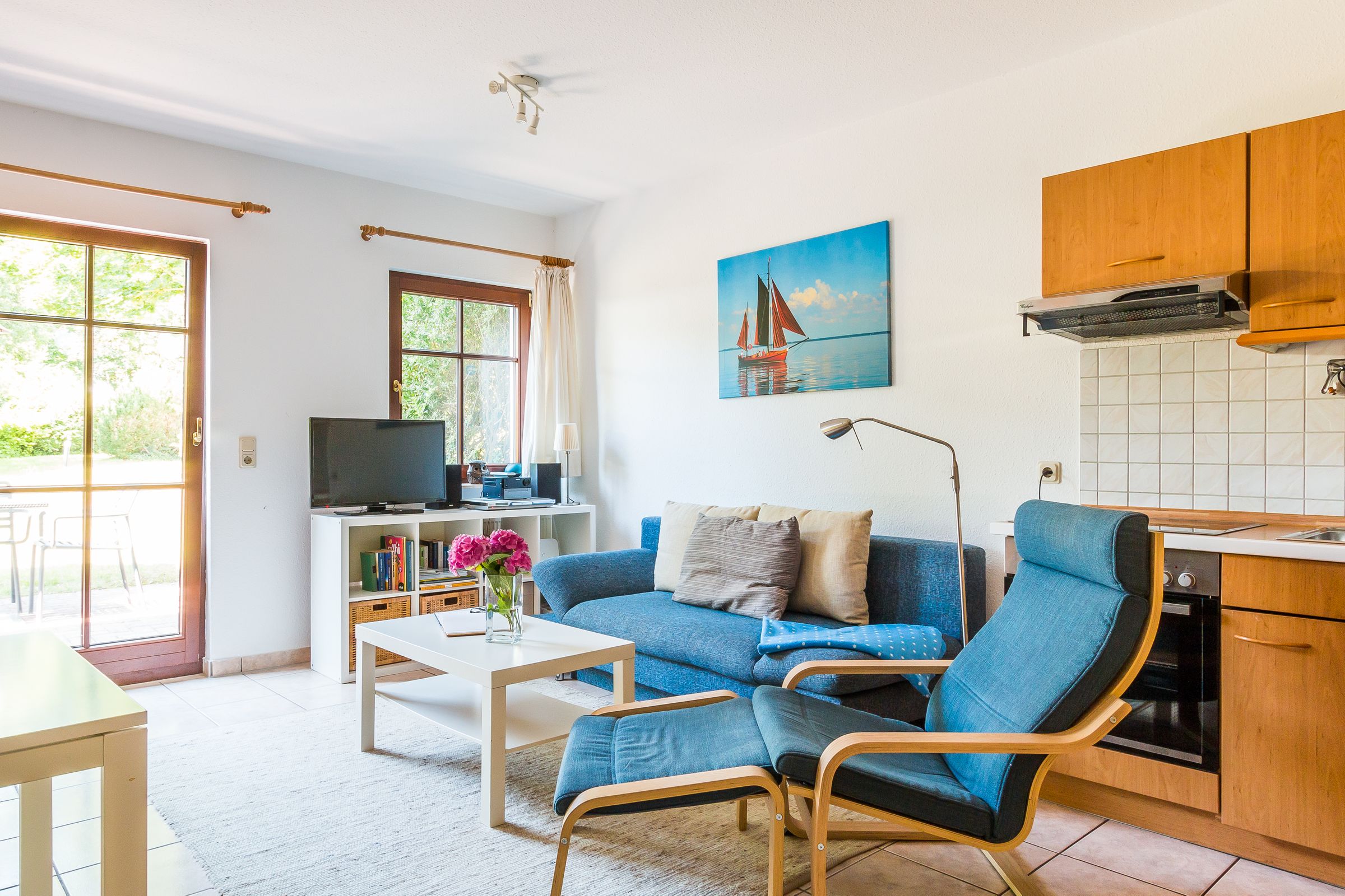 Die Wohnung ist ideal für ein bis zwei Personen, ein Hund ist gestattet. Als Alleinreisende habe ich mich zusammen mit meinem Zwergpudel sehr wohl gefühlt; die Wohnung ist sehr liebevoll und zweckmäßig ausgestattet; das Bett und die Matratzen sind neu, das Wohnzimmer ist mit bequemer Couch und Sessel, Tisch und zwei Stühlen möbliert, die Küche funktioniert prima, alles was man braucht ist vorhanden. Die Westterrasse ist wunderschön geschützt und bietet am Nachmittag einen ruhigen Sonnenplatz. Die Lage ist sehr gut, Strand, Bodden, Einkaufsmöglichkeiten sind zu Fuß in kurzer Zeit zu erreichen. Ich komme wieder!