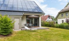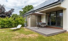 Die großzügige und teilweise überdachte Terrasse mit angrenzender Rasenfläche runden das Gesamtbild ab. Hier kannst du genussvoll in den Tag starten oder die lauen Sommernächte mit einem Grillabend und einem guten Glas Wein ausklingen lassen. Sonnenliegen, ein Grill, ein abschließbarer Fahrradschuppen und ein PKW-Stellplatz runden den Außenbereich ab.