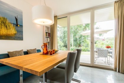 Wir sind begeistert. Ein ganz besonderes Haus, das durch seine perfekt durchdachte Planung und deren äußerst hochwertige, aber auch liebevolle und ins Detail gehende Umsetzung wirklich überrascht. Nahezu neu, ist es hervorragend und sehr stilsicher ausgestattet. Hochwertigste Designermöbel, 2 Fernseher von Loewe und Haushaltsgeräte von Miele finden Platz in einem komplett mit Naturstein und Holz ausgelegten Architektenhaus, dessen Konzept perfekt auf die Anforderungen von Darß-Urlaubern abgestimmt ist. Das Haus ist modern, aber nicht futuristisch und passt sich so sehr gut in die Umgebung ein, bleibt dabei aber dennoch einzigartig in Wieck. Durchgängig Fußbodenheizung, eine Sauna, freies Wifi, eine Waschmaschine mit Trockner, ein Stellplatz direkt am Haus, eine sehr hübsche, überdachte Terrasse und ein Garten machen die Sache rund. Die Lage in Wieck ist ausgezeichnet: sehr ruhig, aber dennoch recht zentral und nicht abgeschieden. Wieck selbst ist als Urlaubsort absolut zu empfehlen, wenn man keinen Trubel sucht. Wir kommen wieder.