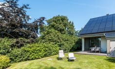Die großzügige und teilweise überdachte Terrasse mit angrenzender Rasenfläche runden das Gesamtbild ab. Hier kannst du genussvoll in den Tag starten oder die lauen Sommernächte mit einem Grillabend und einem guten Glas Wein ausklingen lassen. Sonnenliegen, ein Grill, ein abschließbarer Fahrradschuppen und ein PKW-Stellplatz runden den Außenbereich ab.