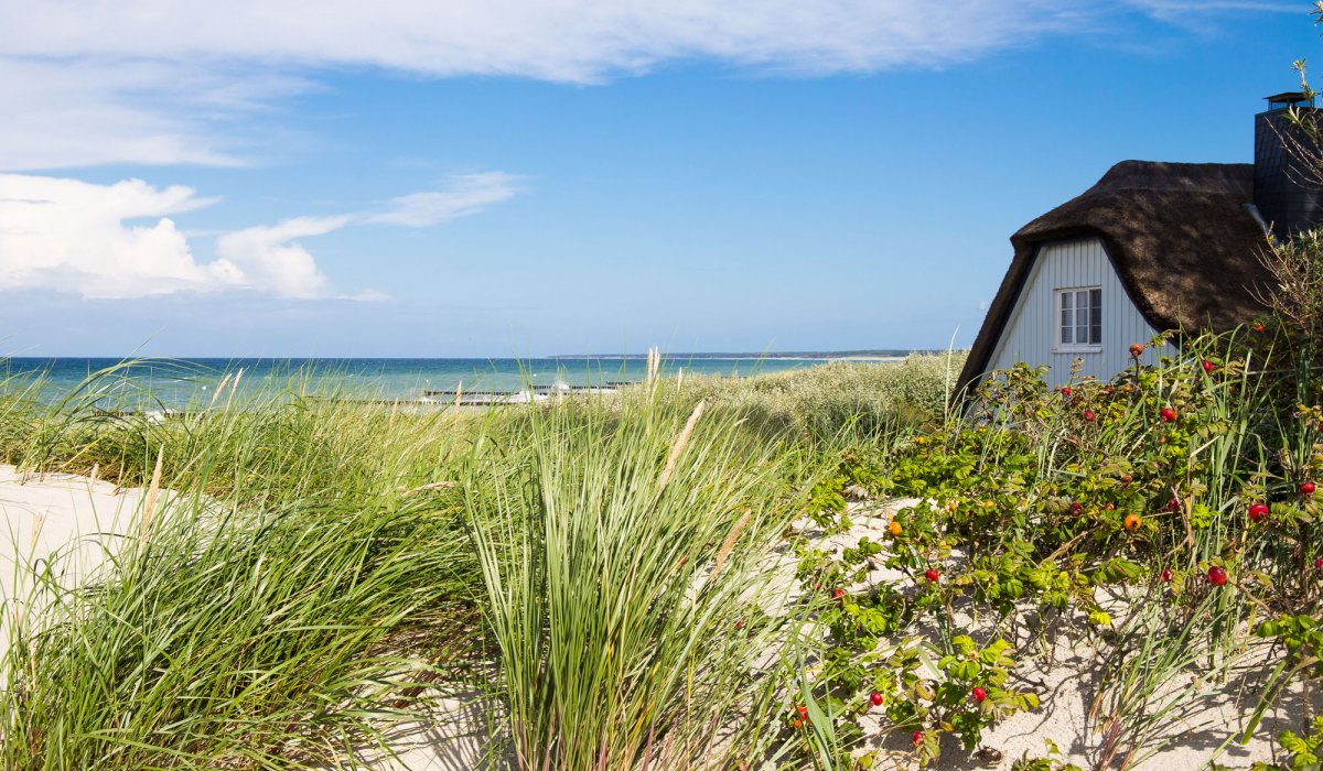 Schilfgesäumte Boddenwiesen, die romantische Dünenlandschaft und ein quirliges Künstlerdorf – vor so einer Kulisse tut Urlaub einfach gut! Landschaftlich eindrucksvoll ist auch das nahe Steilufer in Richtung Wustrow. Hoch oben nisten die Mauersegler, während unten am Strand Urlauber nach Bernsteinen und Hühnergöttern suchen. Wer es gern einsam hat, wandert im Naturschutzgebiet Ahrenshooper Holz durch die alten Buchen- und Eichenwälder und staunt über die vielen Stechpalmen im Unterholz. Noch eindrucksvoller ist ein Spaziergang in den Nationalpark und zum wilden Weststrand.