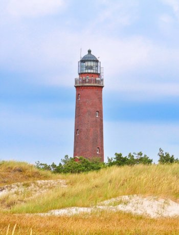 Der Darßer Leuchtturm aus rotem Backstein ist eine echte Besonderheit: Er stammt von 1848 und gilt als der älteste aktive Leuchtturm an der Mecklenburg-Vorpommerschen Küste! 35 Meter ist er hoch. Über eine schmiedeeiserne Wendeltreppe gelangst du in 134 Stufen zur Aussichtsplattform. Das solltest du dir auf keinen Fall entgehen lassen, denn es erwartet dich ein grandioser Rundblick über Wald, Wasser und Weststrand. Mit viel Glück ziehen ein paar Schweinswale im Meer vorbei oder ein paar Kegelrobben lassen sich blicken. Und ganz vielleicht breitet auch ein Seeadler seine Schwingen über dir aus!